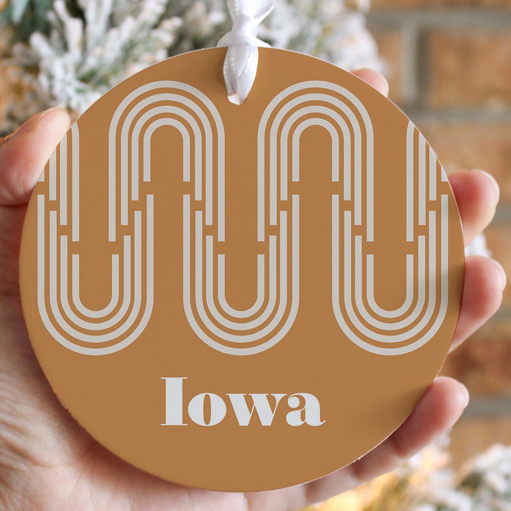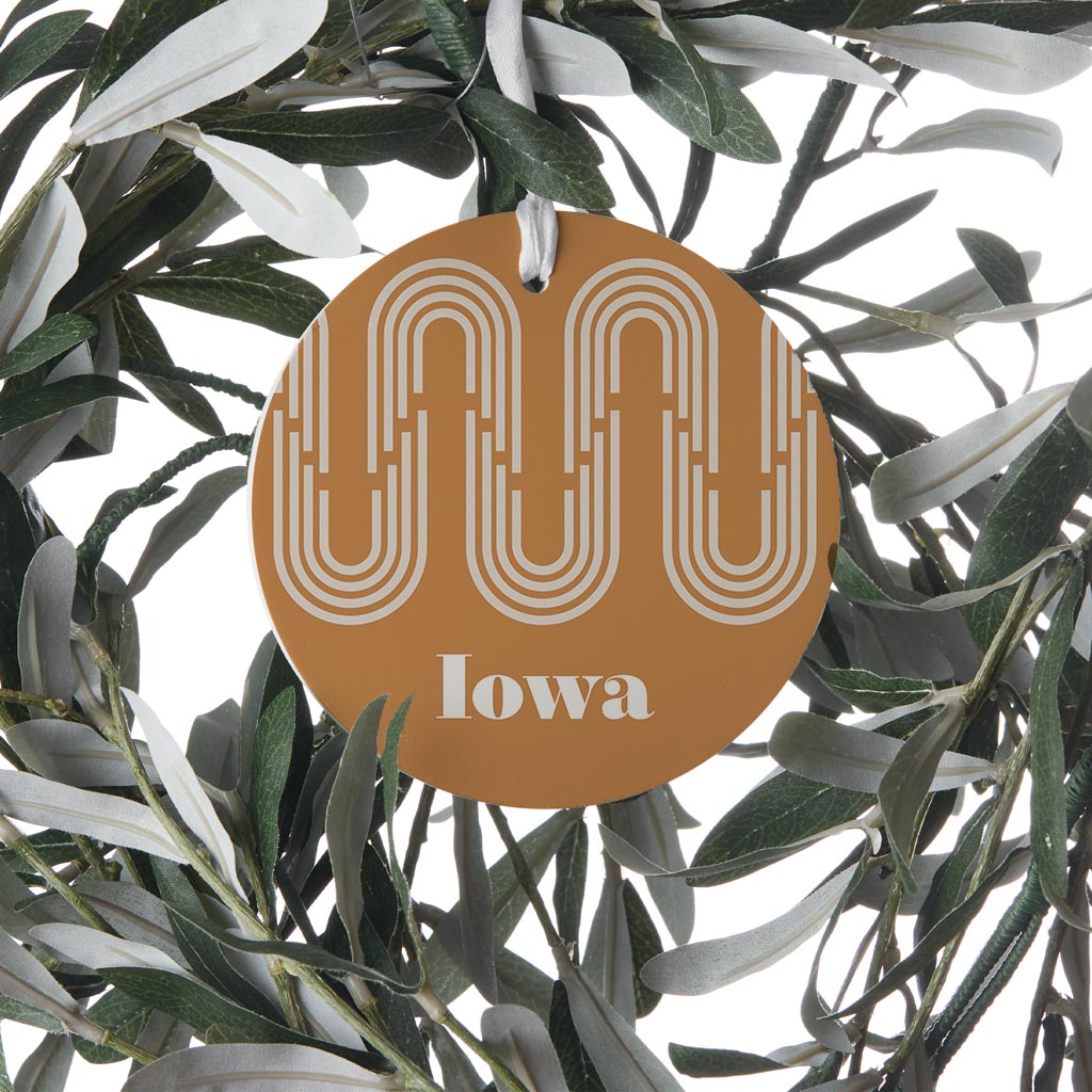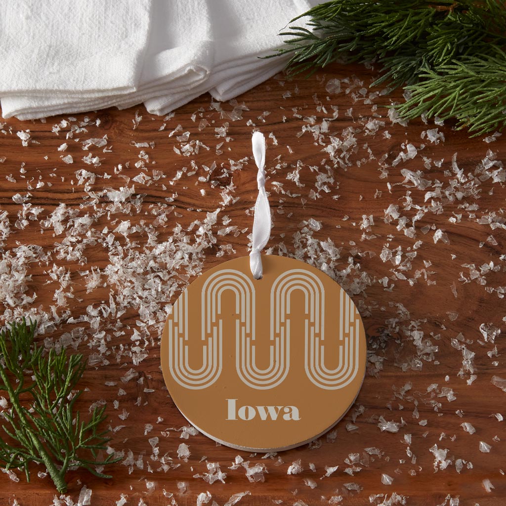 Vintage Groove Yellow Wave Lines Iowa | Wood Ornament | Eaches | Min 6