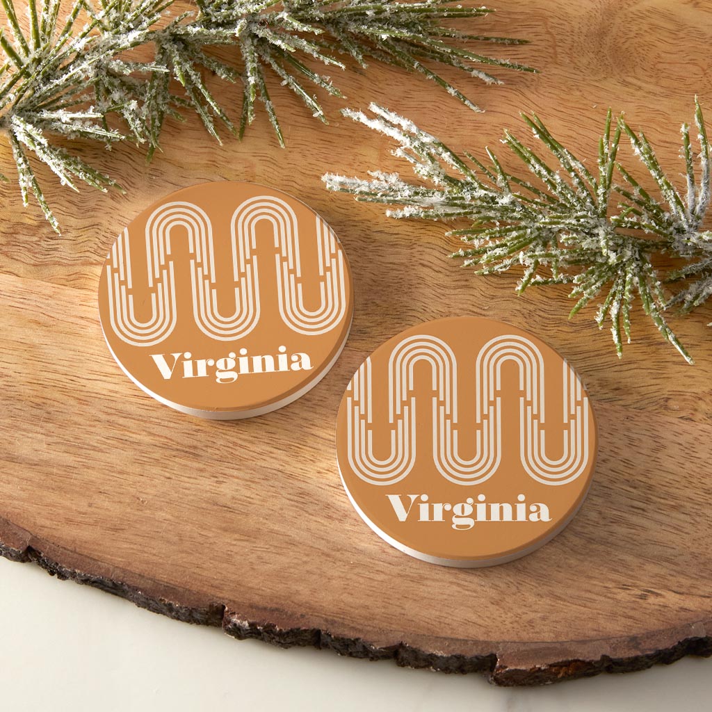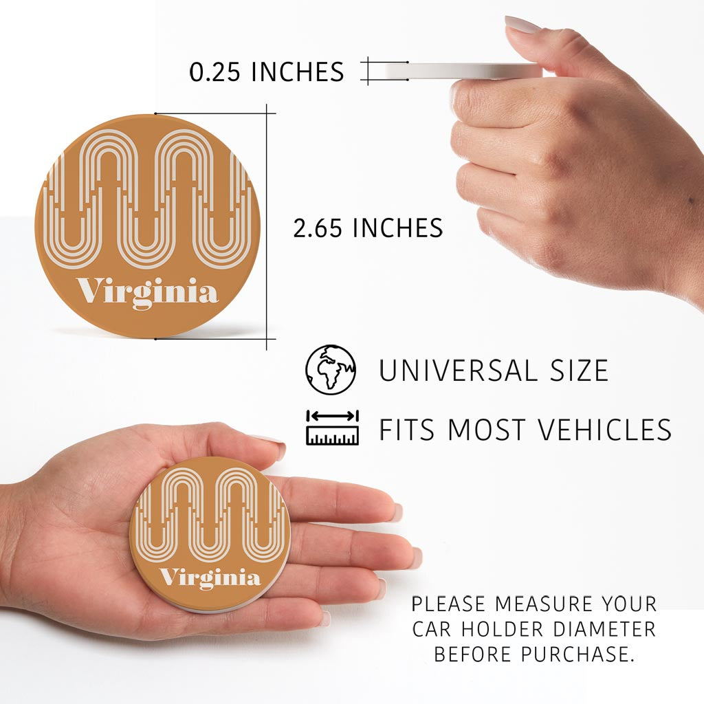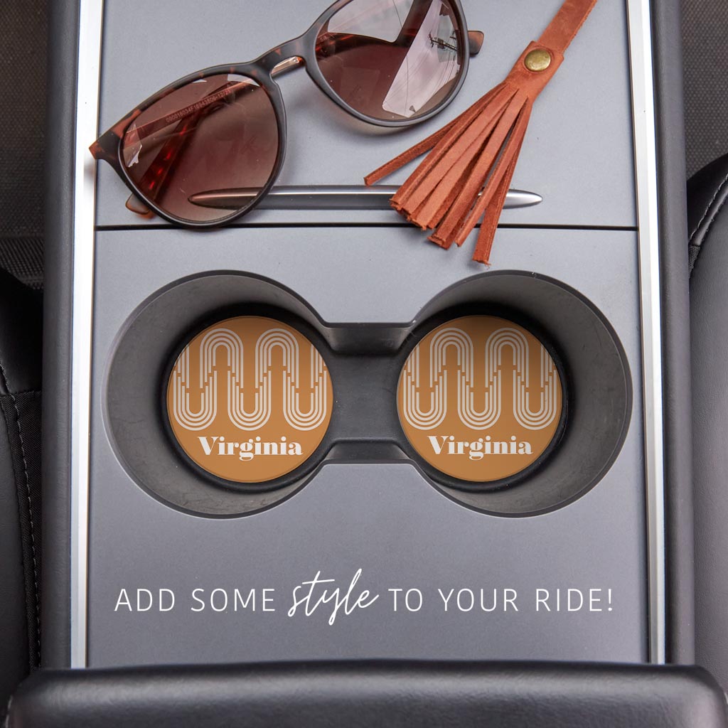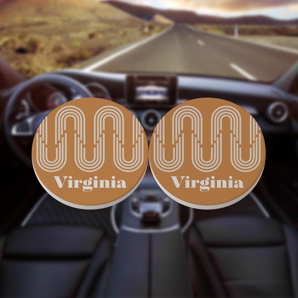 Vintage Groove Yellow Wave Lines Virginia | Absorbent Car Coasters | Set of 2 | Min 4