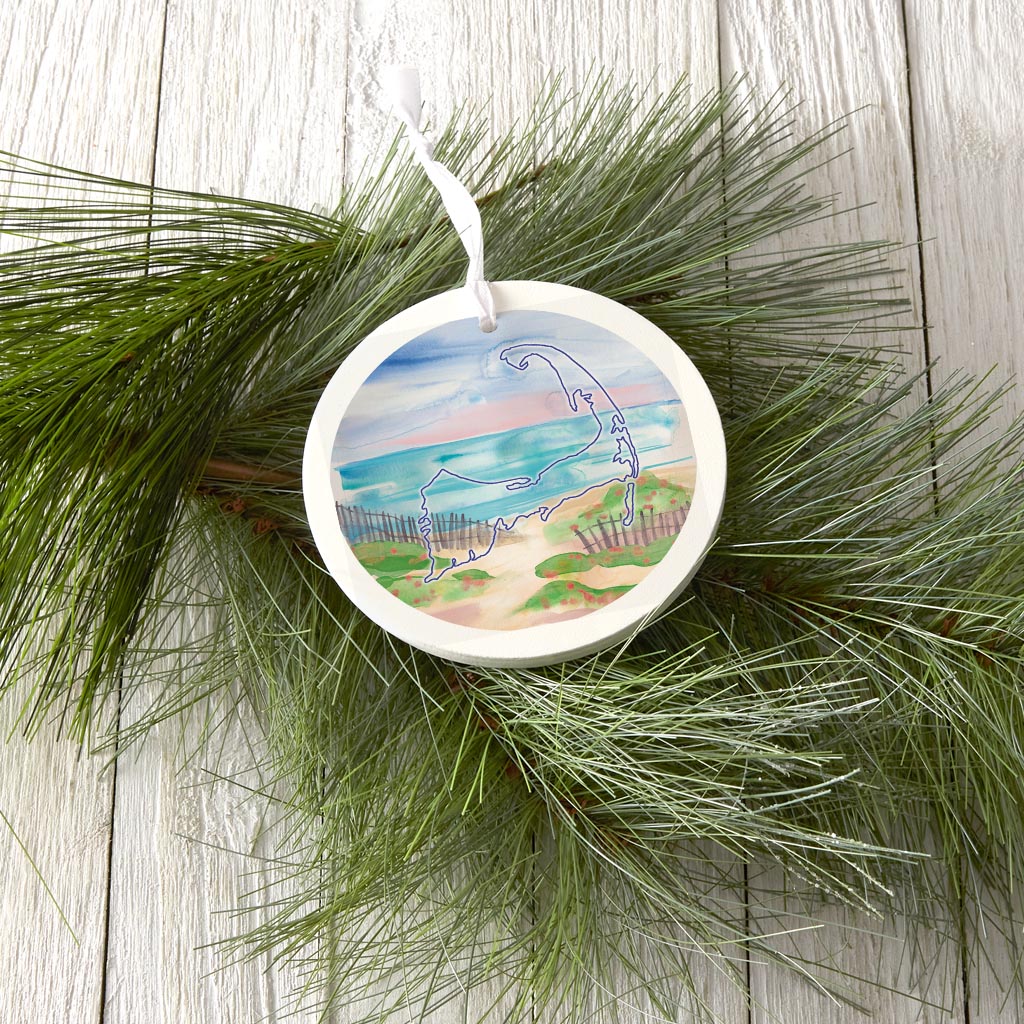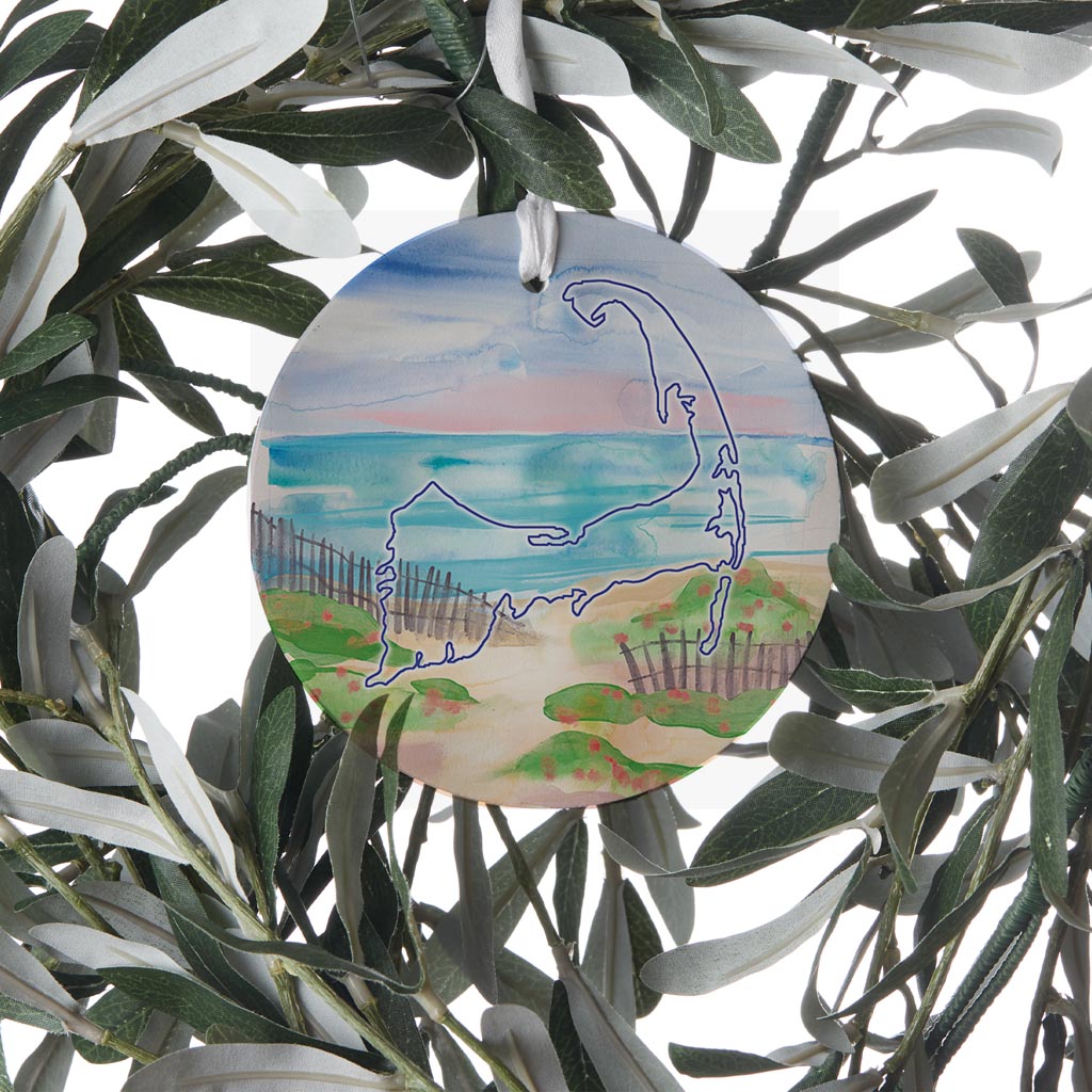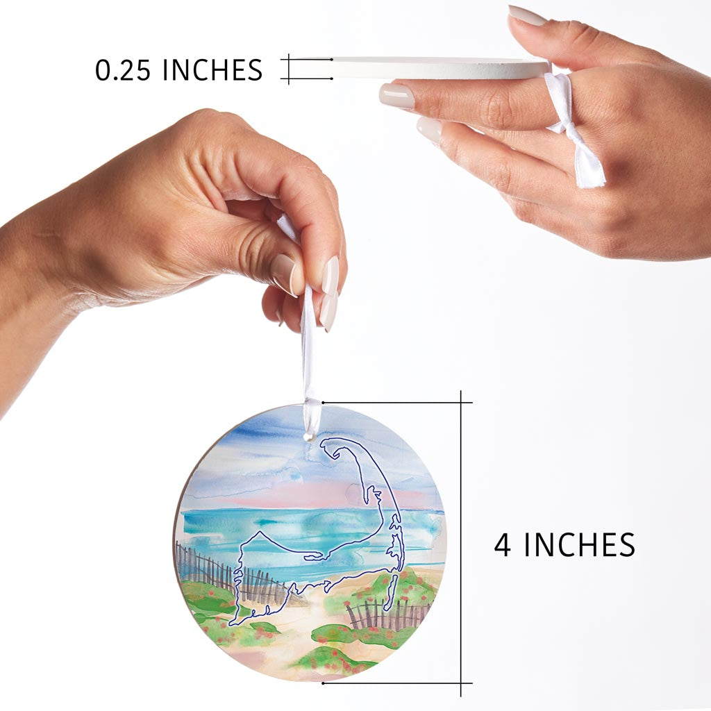 Watercolor Beach Scene | Wood Ornament | Eaches | Min 6