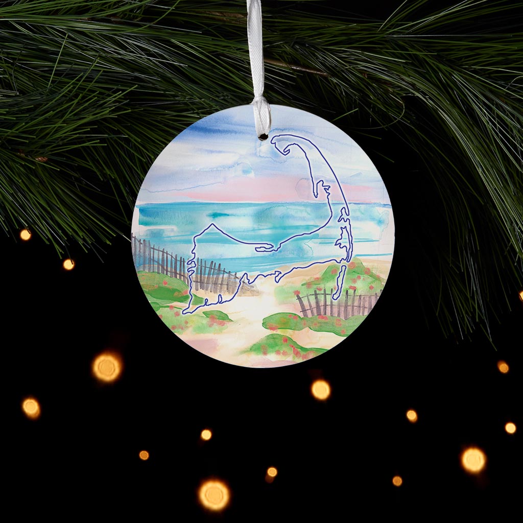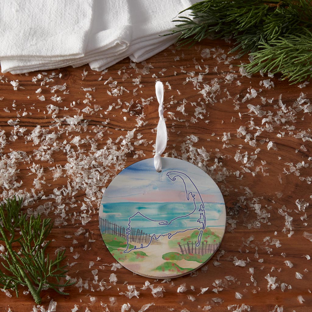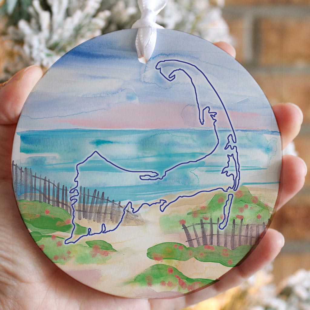 Watercolor Beach Scene | Wood Ornament | Eaches | Min 6