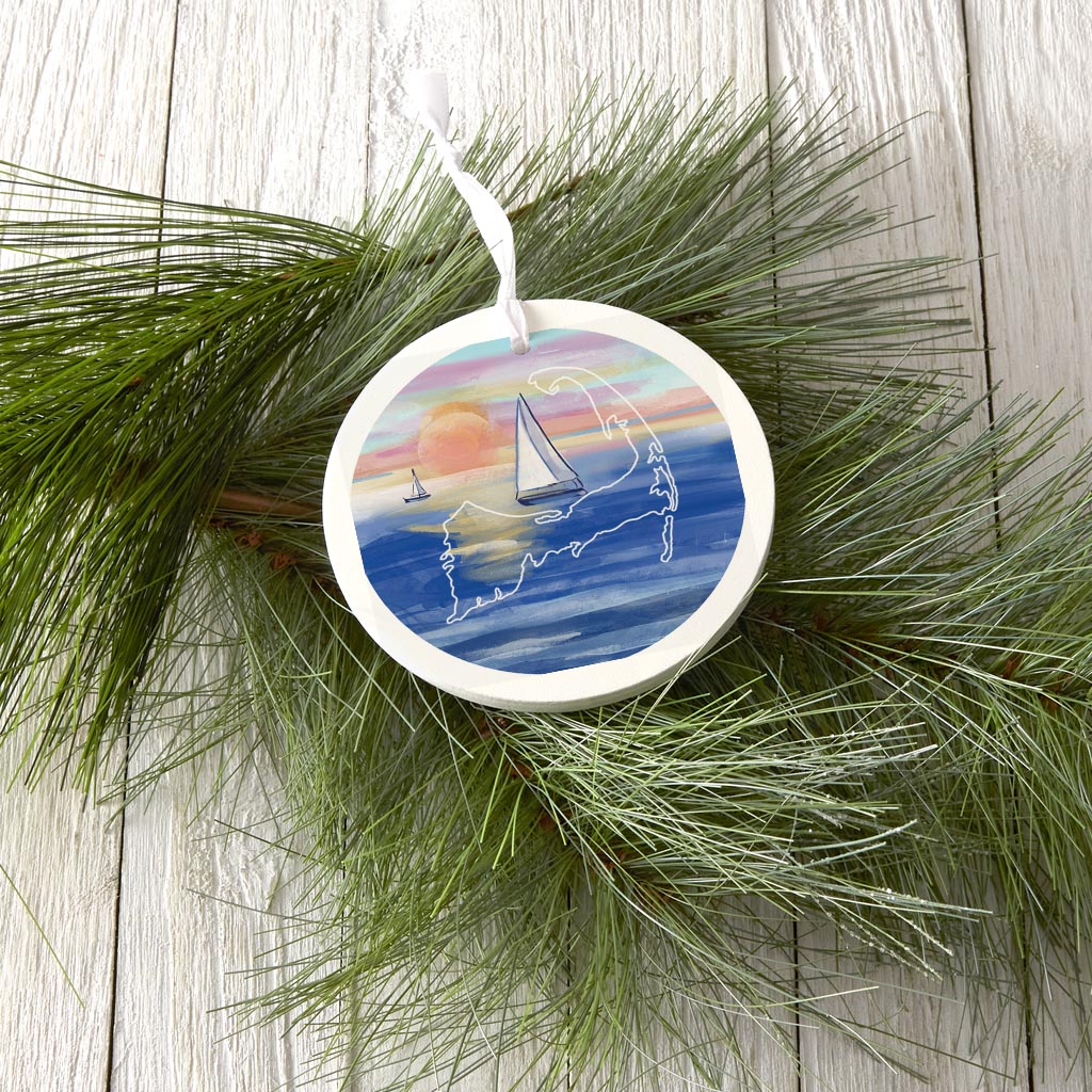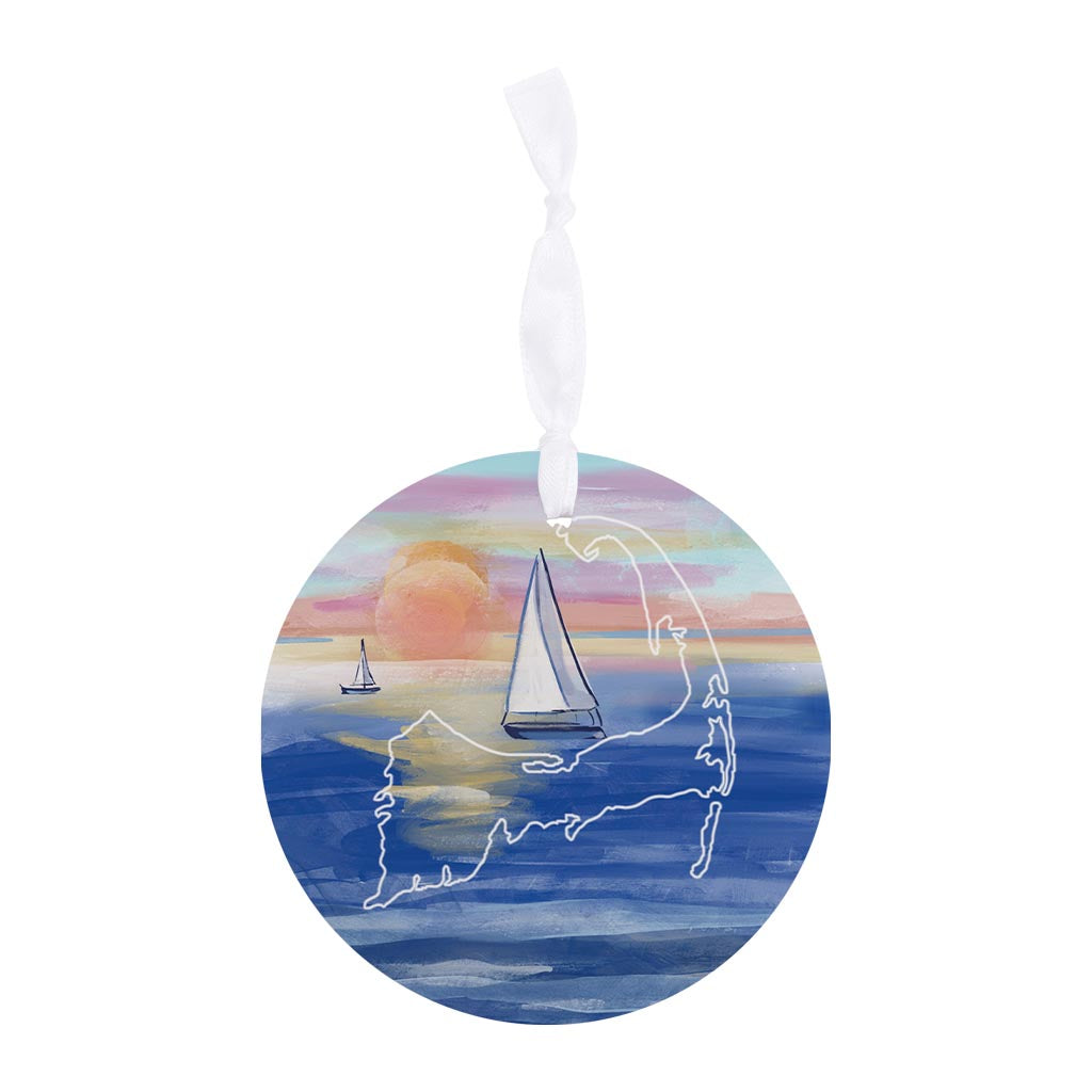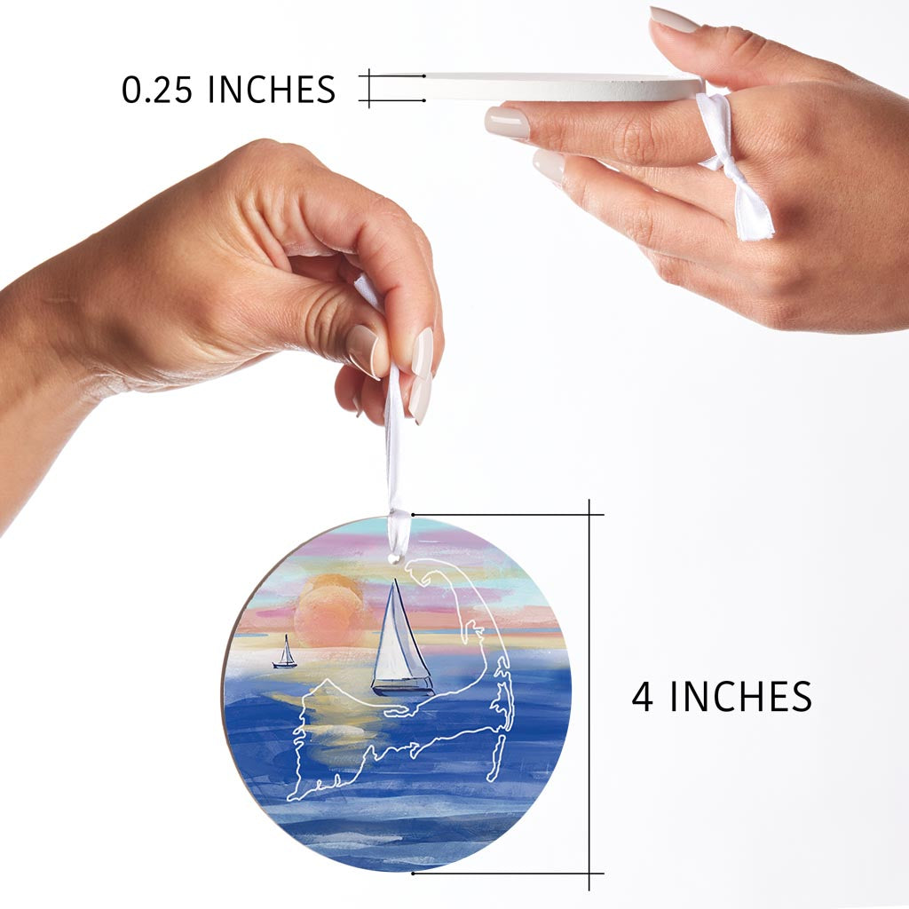 Watercolor Sunset With Sailboats | Wood Ornament | Eaches | Min 6