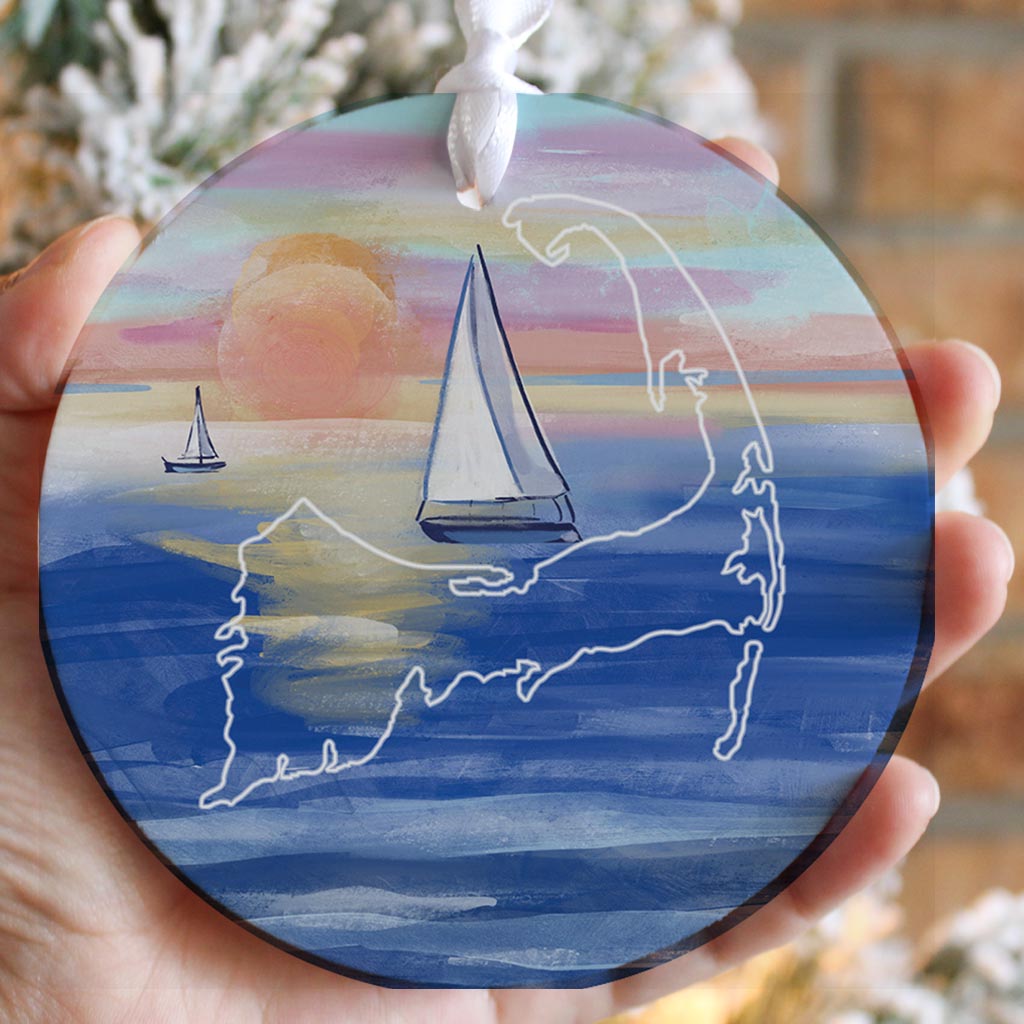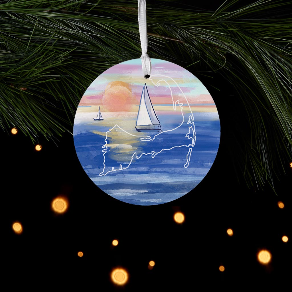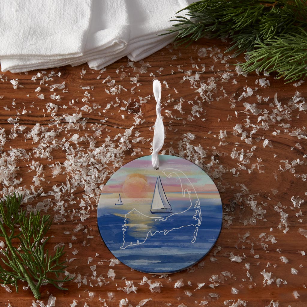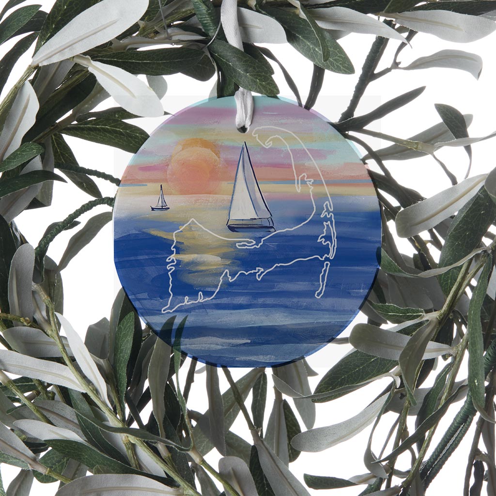 Watercolor Sunset With Sailboats | Wood Ornament | Eaches | Min 6