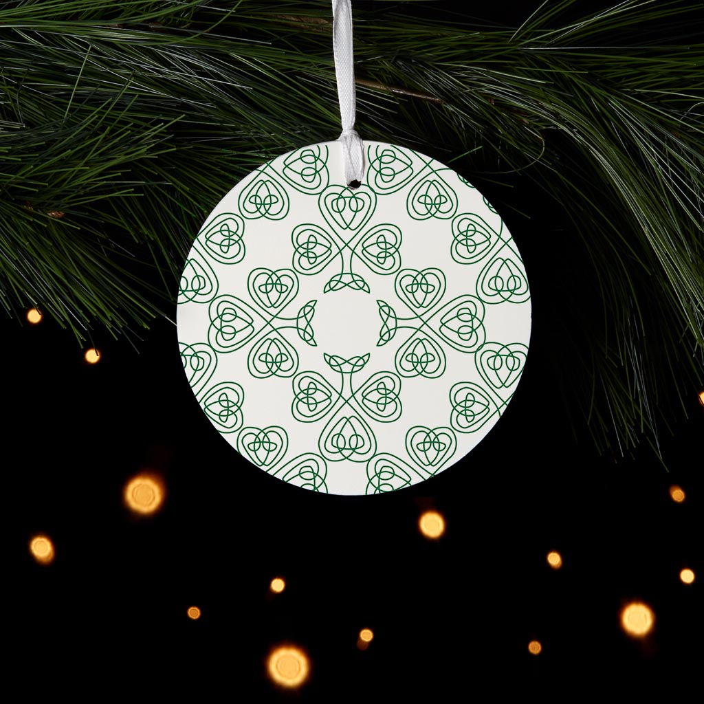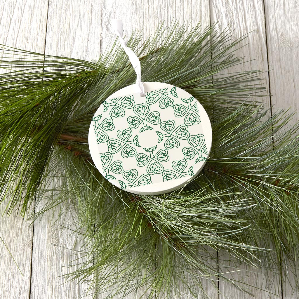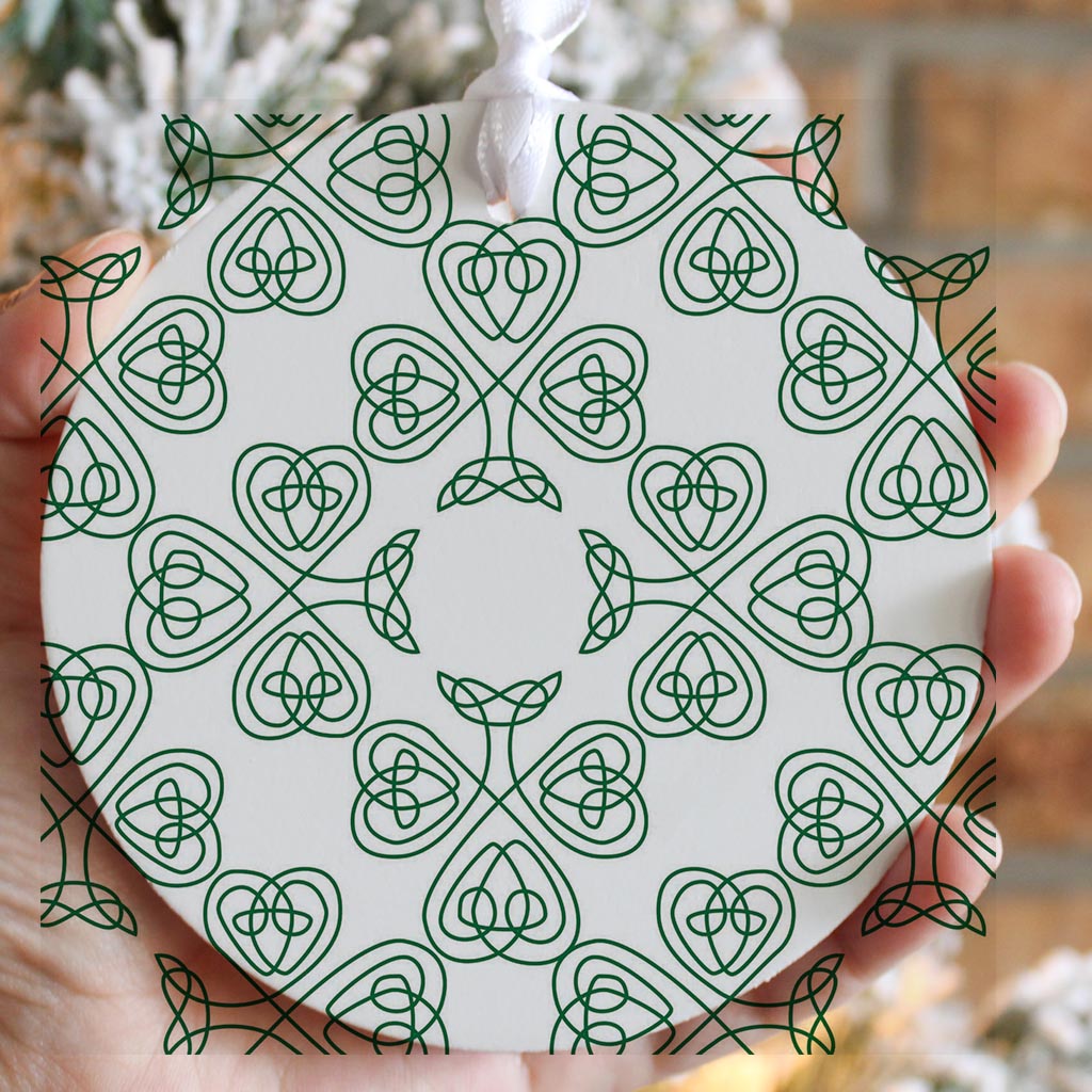 White Green Shamrock Pattern| Wood Ornament | Eaches | Min 6