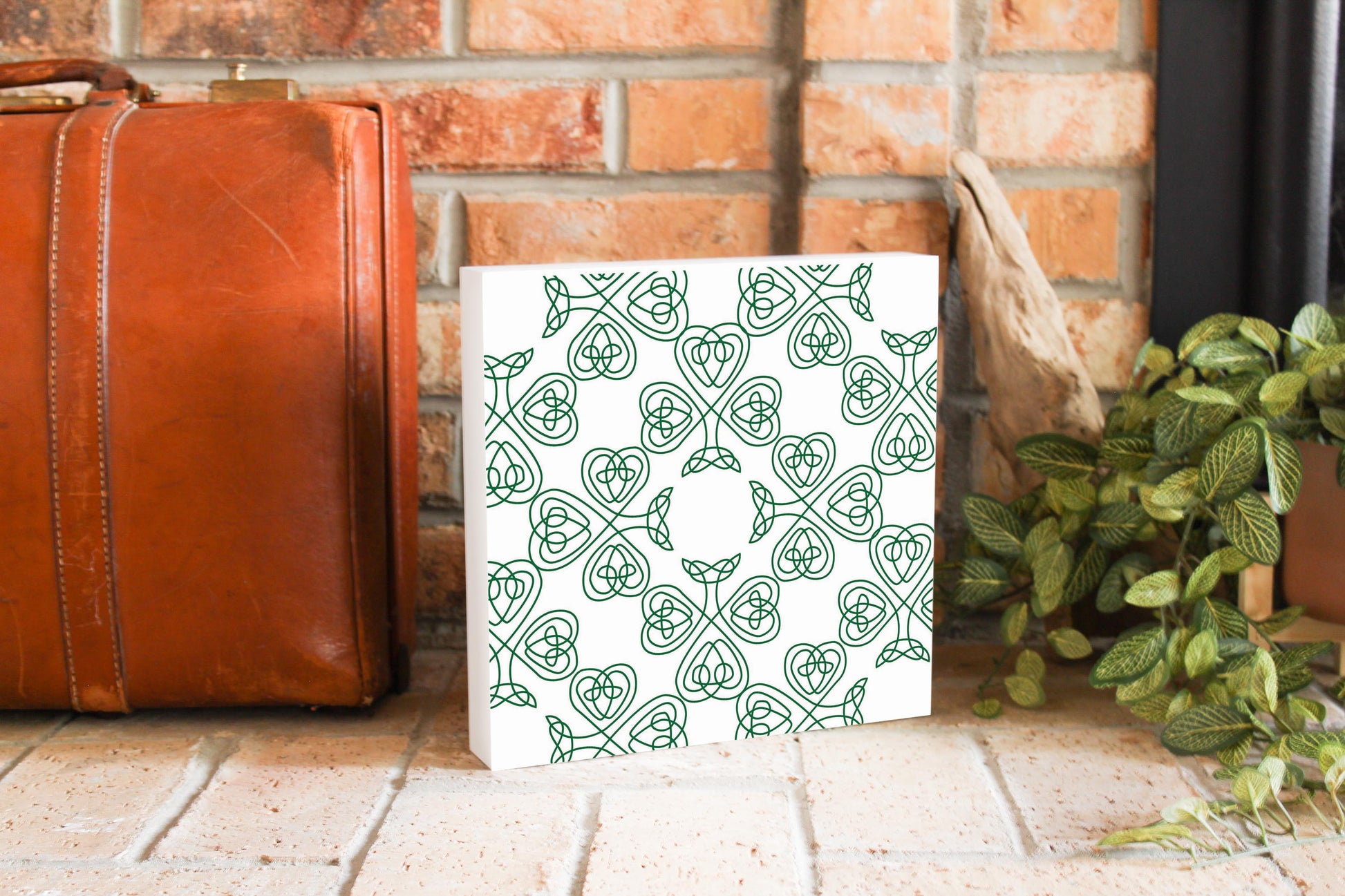 White Green Shamrock Pattern | Wood Block | Eaches | Min 2