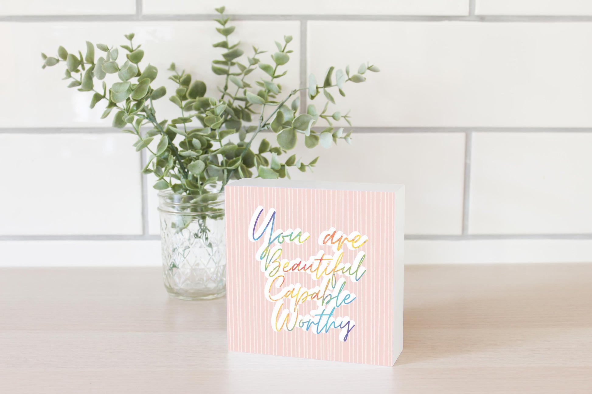 You Are Beautiful Capable Worthy | Wood Block | Eaches | Min 4